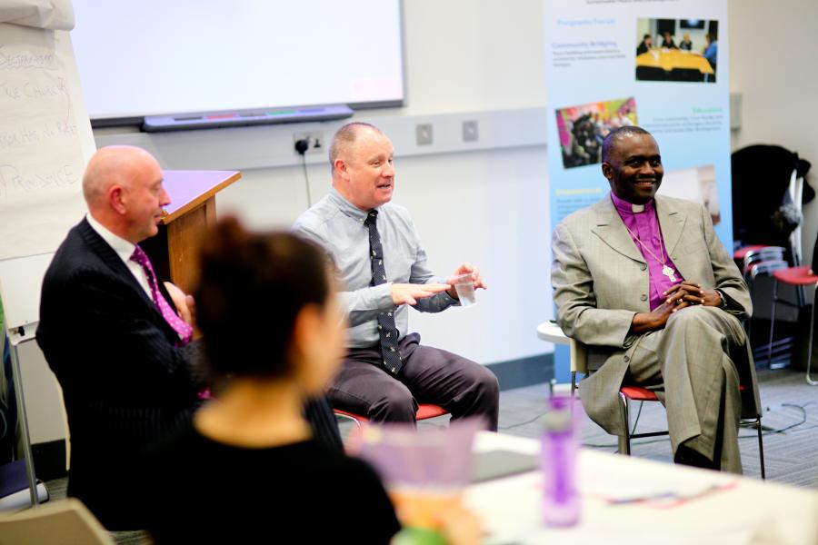(left to right) Mr. Peter Sheridan, the CEO of Cooperation Ireland, Dr. Garry Mason of the Methodist Church Belfast, Bishop Sunday Onouha Executive Director of the Nigeria Inter-faith Action Association (NIFA) at the Global Peace Leadership Forum in Belfast, Ireland.