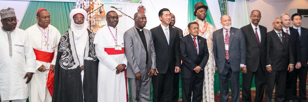 Interfaith leaders and Global Peace Foundation leaders at the pivotal Global Peace Leadership Conference in Abuja, Nigeria in 2013 to launch the One Family Under God campaign.