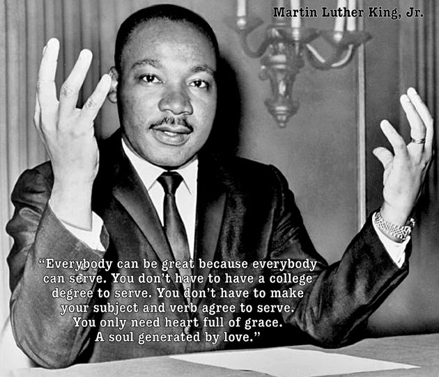In essence, he redefines the definition of greatness not based on titles, positions, power or wealth, but “that everybody can be great, because everybody can serve.” The nobility of life is determined by how much one lives according the universal principles that govern this world, the most basic of these principles being living for the sake of others with “a heart full of grace, a soul generated by love.”