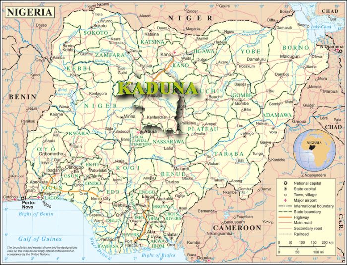 Kaduna State is a microcosm of Nigeria, evenly split between Muslim and Christian citizens. (Credit: UN Maps)