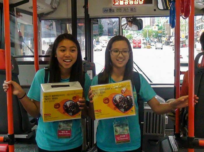 International student volunteers raising money for “Miracle of 1,000 Won” a donation drive to support bread factories in North Korea that provide daily bread for local school children.