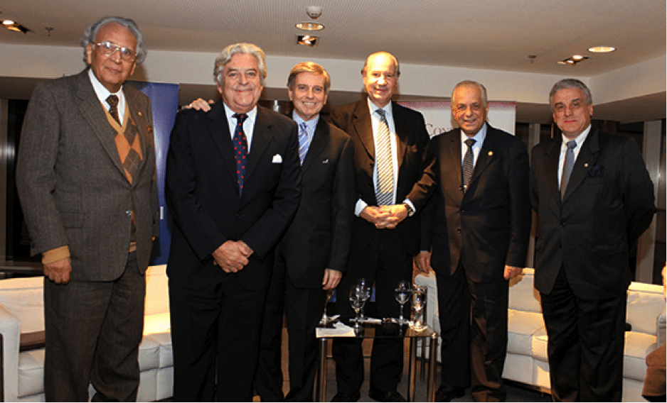 Speakers and moderators from left to right: Dr. Leonardo Guzman; former President Luis Lacalle; Jorge Guldenzoph, President of CLU and GPF-Uruguay; Ruperto Long, former Senator and Dr. Alberto Scavarelli, Former Senator