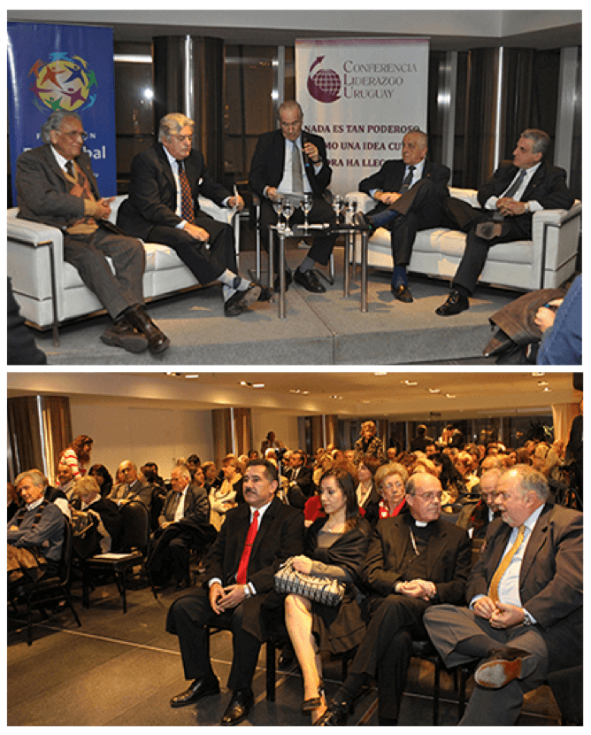 Top: Speakers addressed the importance of enduring principles and values as the foundation for progress and development. Bottom: Over 140 participants represented a cross-section of Uruguay’s leadership, from media, education, civil society and government.