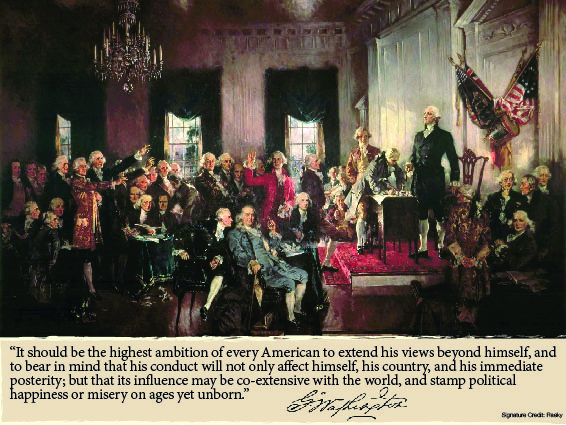 Washington was keenly aware of the impact of his actions on future Americans. He said, “It should be the highest ambition of every American to extend his views beyond himself, and to bear in mind that his conduct will not only affect himself, his country, and his immediate posterity; but that its influence may be co-extensive with the world, and stamp political happiness or misery on ages yet unborn.” (Pennsylvania in 1789)